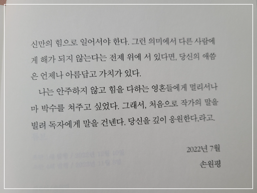 작가 손원평 님의 「작가의 말」 은 이 소설을 더욱 멋지게 만드는 마무리입니다
