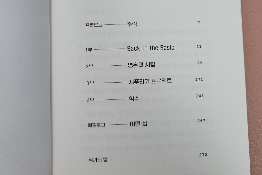 이 책을 고를 때는 프롤로그 첫 장에 죽기 위해 강물에 몸을 던진 주인공이 하는 말에 끌려서였어요
